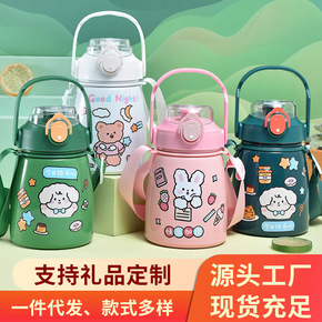 网红不锈钢大肚保温杯手提卡通礼品学生水杯大容量弹跳吸管儿童壶