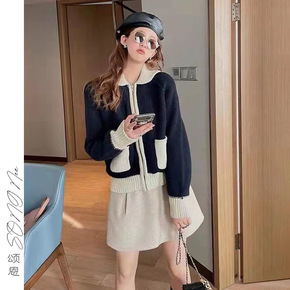香风拼接毛衣针织开衫秋冬新款法式百搭加厚拉链设计感小众外套女