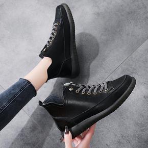 真皮高帮休闲鞋女2021秋冬新款平底单靴复古英伦风马丁靴子妈妈鞋