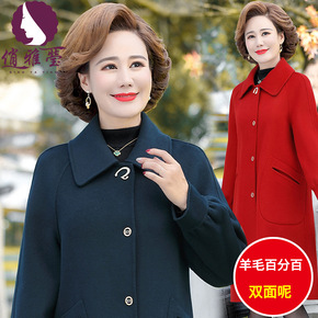 2021妈妈装冬季新款纯色翻领羊毛双面呢外套大码中老年女装大衣