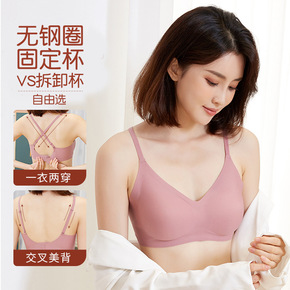 女士美背无痕一片式内衣女小胸聚拢可调节小肩带 无钢圈薄款文胸