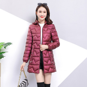 2021羽绒棉服女冬装中长款修身百搭新款中年妈妈轻薄显瘦亮面棉袄