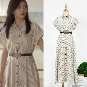 一生一世白鹿同款夏季时尚气质显瘦休闲圆点印花立领长款连衣裙女
