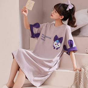 睡裙女夏季薄款纯棉短袖大码宽松2022年新款可爱春秋款睡衣家居服
