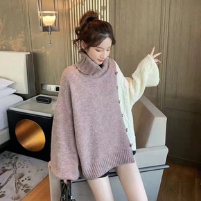 2021新款毛衣女时尚韩版宽松外穿中长款慵懒高领复古港味麻花上衣