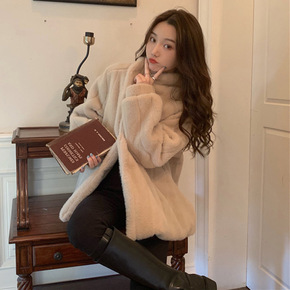 獭兔毛皮草外套女中长款2021年新款年轻款时尚仿水貂绒上衣显瘦冬