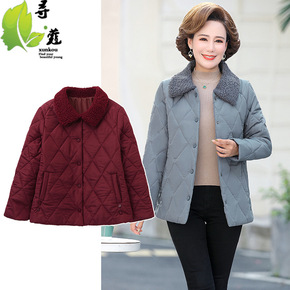 2021新款冬装妈妈棉衣40岁翻领拼接中老年女装外套大码中年棉服MQ