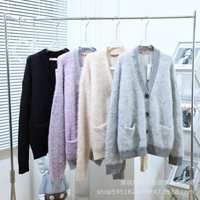 现货2021秋冬新款AC马海毛V领针织羊毛上衣开衫 女