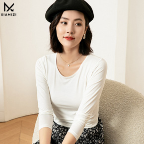 莫代尔圆领打底衫女秋冬女装2022薄款长袖T恤修身保暖上衣内搭