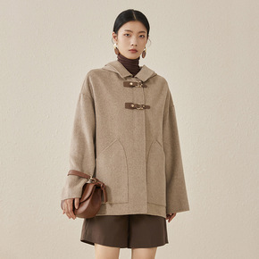 实拍2021新款千鸟格风衣式毛呢外套女秋冬小个子短款复古呢子大衣