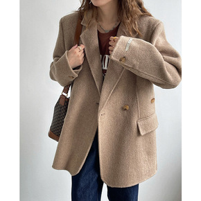 大码欧美女装洋气金貂绒大衣中长款宽松加厚胖mm毛呢外套200斤秋