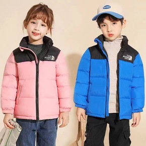 女童羽绒服2022男童拼色连帽中大童宝宝洋气保暖白鸭绒羽绒服外套