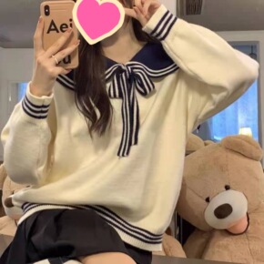 学院风海军领小清新针织毛衣秋冬新款气质减龄元气少女保暖套头衫