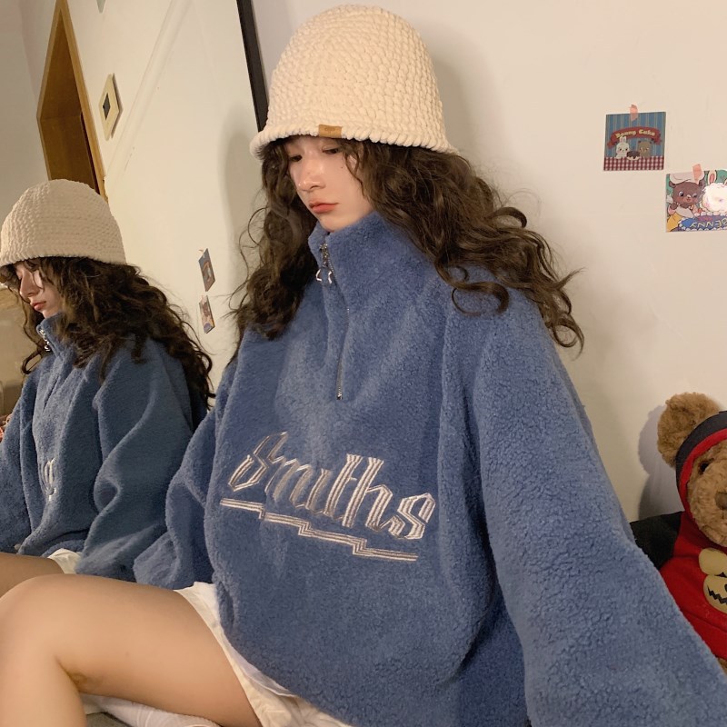 F7829实拍 秋季新款韩版卫衣连帽宽松字母休闲慵懒风上衣女外贸