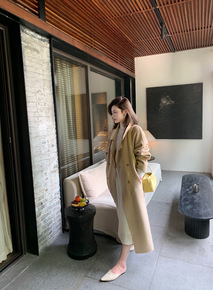 魔鬼大衣经典春款气质小翻西装领双面毛呢外套2022秋冬双排扣大衣