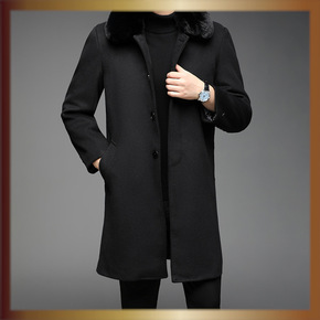 2021冬季新款白鸭绒保暖冬装青年男士休闲黑色毛领羊毛羽绒服外套