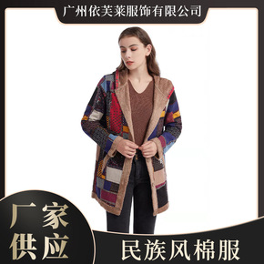2021秋冬季新款民族风棉服女长袖连帽棉袄宽松中长款加厚棉衣外套
