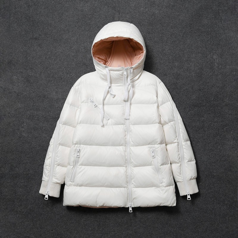 m家2021冬新款斜拉链羽绒服女连帽加厚宽松女短款斗篷a字款外套潮