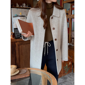 TG 翻领羊毛双面呢外套女韩版chic2021冬季新款系扣纯色大衣15333
