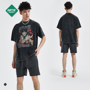 ARTIE男装|新款动漫卡通游戏印花做旧男t恤暗黑风潮牌男装复古T恤