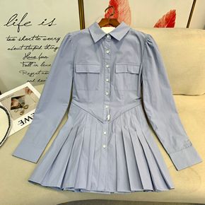 【JOEY】“格林威治”英伦小味道 藏青色复古毛呢大衣 衬衫裙新款