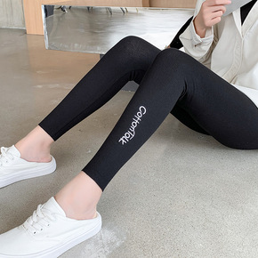 2022春新款竖条纹棉打底裤女外穿有冬季加绒加厚高腰字母显瘦百搭