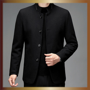 2021新款男士羊毛呢夹克加厚立领爸爸装中老年双面呢大衣短款外套