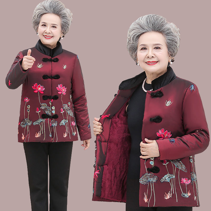 中老年人冬装女棉衣奶奶加绒加厚外套老人衣服棉袄老太太妈妈棉服