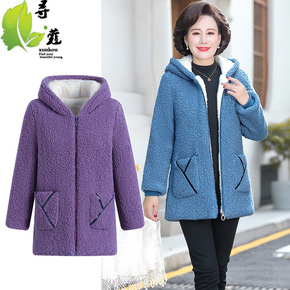 妈妈冬羊羔毛外套加绒加厚中长款大衣中年女时尚洋气颗粒绒上衣XR