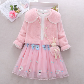 女童加绒冬裙2022新款韩版翻领水貂绒连衣裙儿童加厚两件套套装潮
