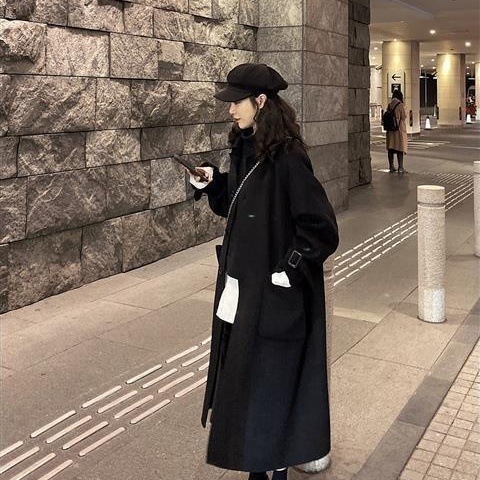 黑色长款过膝赫本风毛呢外套女呢子大衣2021秋冬季新款加厚宽松