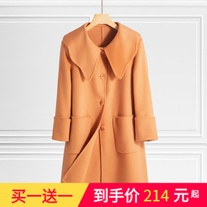 2021新款双面羊绒大衣女中长款高端女装红色气质直筒秋冬毛呢外套