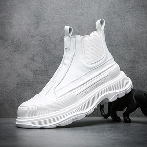 男士皮靴秋季新款厚底增高靴子高帮休闲潮流套脚切尔西靴温州男鞋