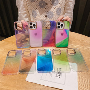 电镀框炫彩透明渐变软壳适用苹果14promax/13/12/11/XR手机壳新款