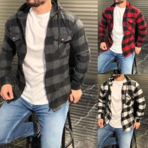 2022跨境外贸现货亚马逊ebay秋冬长袖男大码卫衣格子连帽卫衣外套