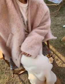 新款水貂绒毛衣开衫外套女针织秋冬新款waitmore宽松慵懒上衣女
