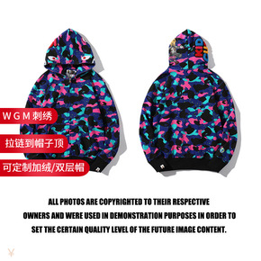 2021新款 潮牌猿人街头3D数码印花迷彩开衫卫衣 鲨鱼头运动外套男