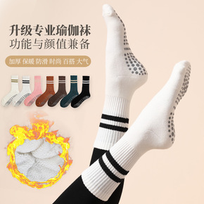秋冬普拉提袜健身袜长袜防滑瑜伽袜子全棉批发女士中筒毛圈运动袜
