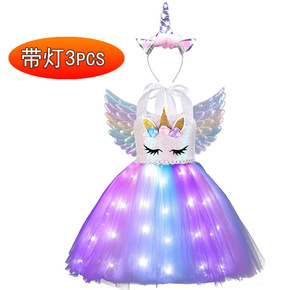 女童连衣裙LED灯发光独角兽网纱生日派对六一儿童节表演服tutu裙