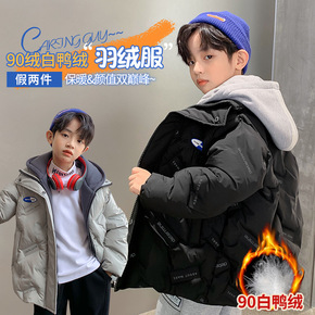 男童中大童90绒白鸭绒羽绒服2022冬季新款加厚假两件羽绒服外套韩