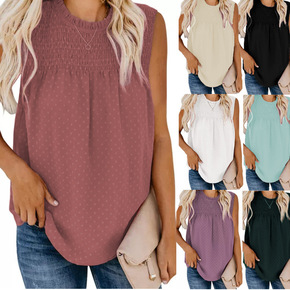 欧美跨境女装夏季新款纯色圆领套头雪纺衫亚马逊无袖修身背心上衣