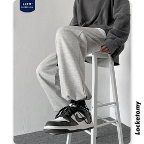 LKTM男装#春季新款卫裤男ins冬季保暖宽松直筒抽绳束脚运动休闲裤