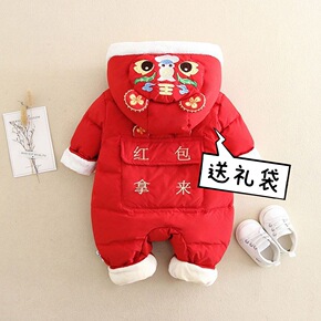 婴童婴儿连体衣冬装男女老虎宝宝拜年服棉衣加厚冬季红色过年服装