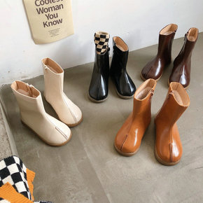 秋冬季儿童加绒靴子女童中筒短靴皮靴男童毛靴软底雪地棉靴马丁靴