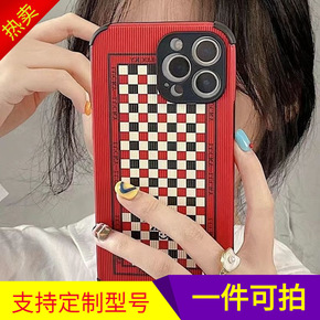 适用ins复古红色格纹vivoy52s手机壳y73s/x60y30z5女s7s9e/s10/iq