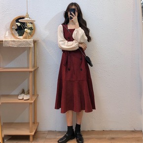 2022春秋新款法式复古优雅显瘦拼接裙鱼尾裙方领气质打底连衣裙女