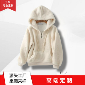 定做羊羔绒卫衣男女秋冬加厚潮牌半拉链连帽卫衣情侣上衣外套定制