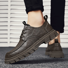 男鞋秋季真皮复古英伦风黑色皮鞋防滑防水男士低帮马丁靴