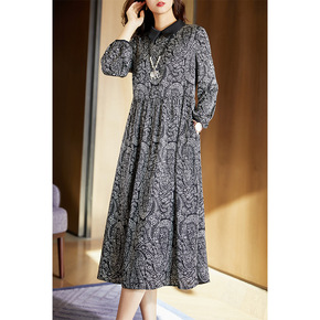 中老年妈妈装碎花缎面连衣裙女2022新款大码女装裙子#LQ12395清仓