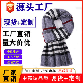 100%纯羊毛围巾男士冬季高档韩版潮百搭格子围脖羊毛围巾
